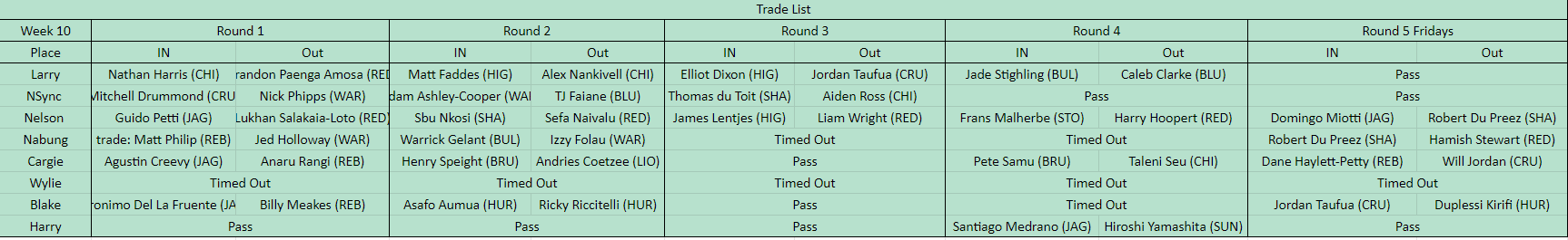 2019 OG League Trade Night Rd 10