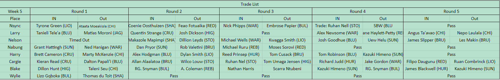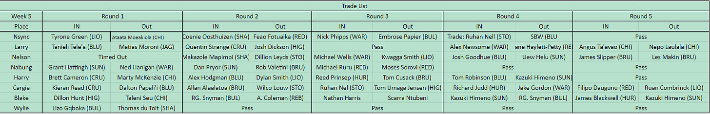 This week we had our first ever player to player trade before draft night kicked off. One of the alterations to our 2019 rules was that any player to player trade completed before trade night, would not count for one of your 5 possible trades. The idea of this was to encourage more trading.