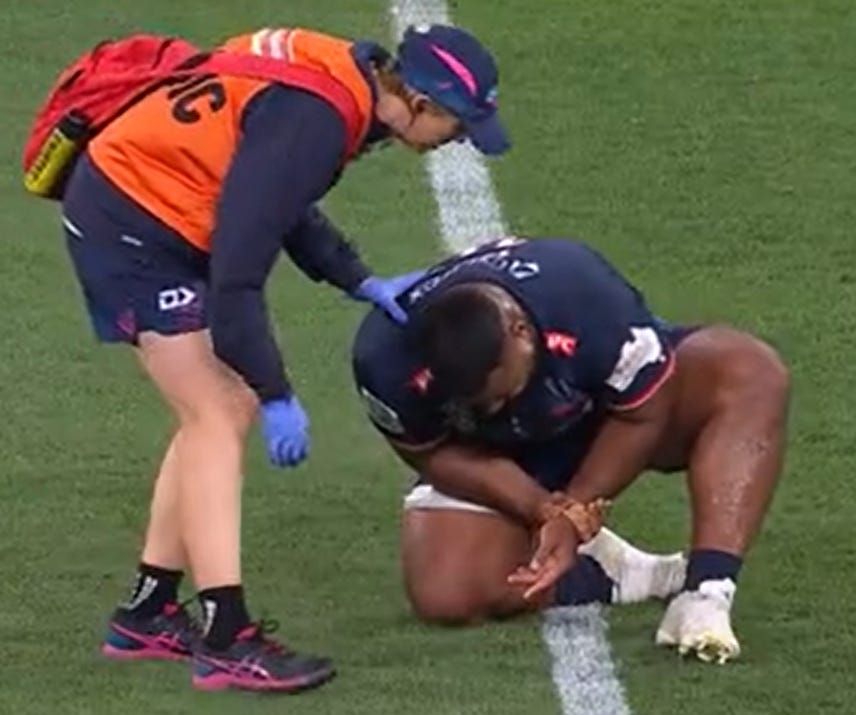 Taniela Tupou (Rebels) - Landed awkwardly on his hand then battled on with what looked to be some reasonable discomfort. After the game he said his hands was numb. Our concern is that he has broken it, although this has not been confirmed anywhere. Source.