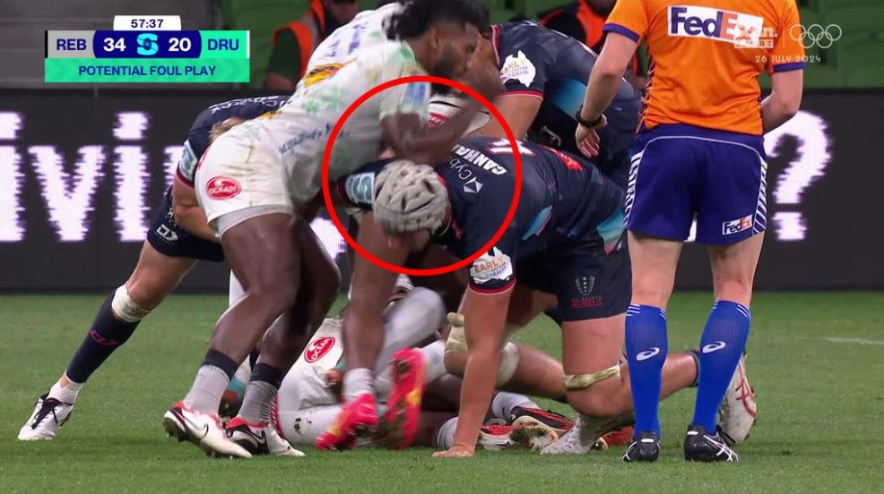 Frank Lomani (Drua) - Red carded for throwing an elbow to Canham’s head. Will go through the judiciary.