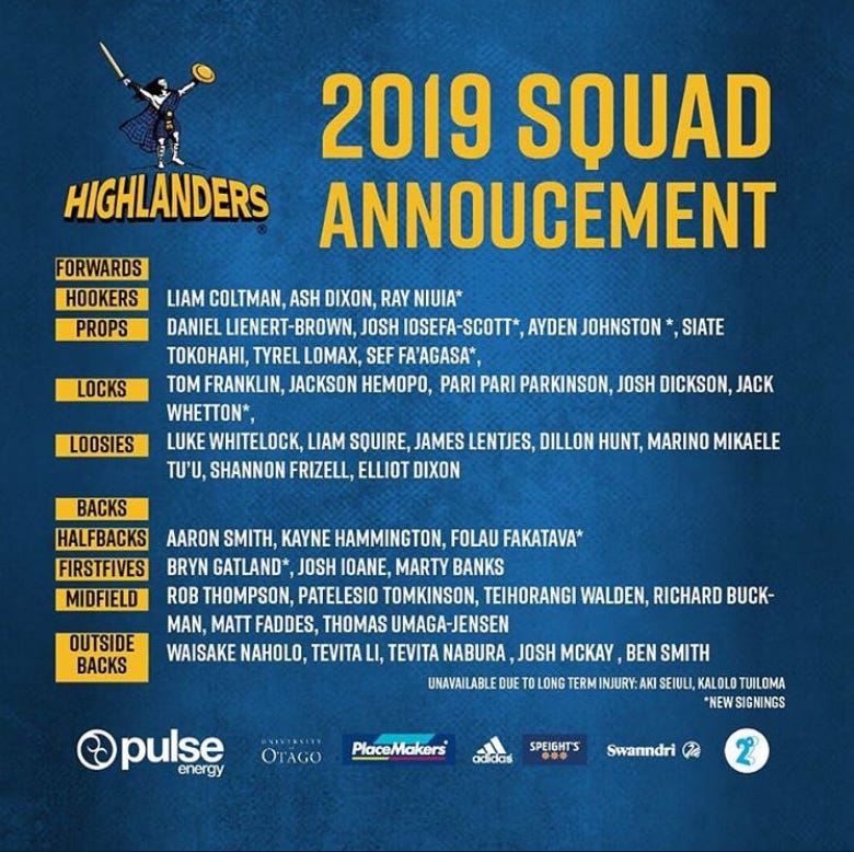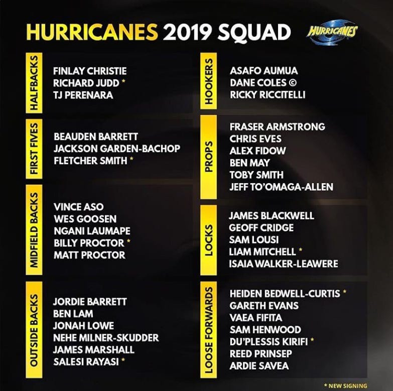Daniel Lienert-Brown, Liam Coltman, Tyrel Lomax, Tom Franklin, Jackson Hemopo, Liam Squire, Dillon Hunt, Luke Whitelock, Aaron Smith, Josh Ioane, Tevita Li, Teihorangi Walden, Rob Thompson, Waisake Naholo, Ben Smith
