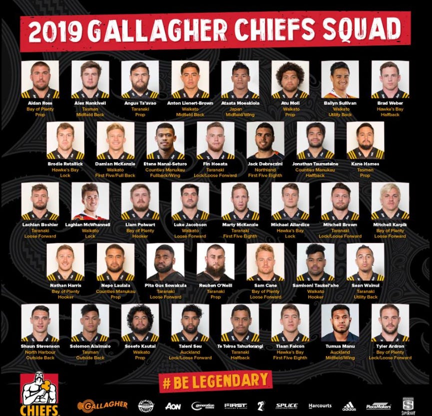 Kane Hames, Nathan Harris, Nepo Laulala, Brodie Retallick, Tyler Ardron, Lachlan Boshier, Sam Cane, Taleni Seu, Te Toiroa Tahuriorangi, Damian McKenzie, Shaun Stevenson, Alex Nankivell, Anton Lienert-Brown, Sean Wainui, Solomon Alaimalo