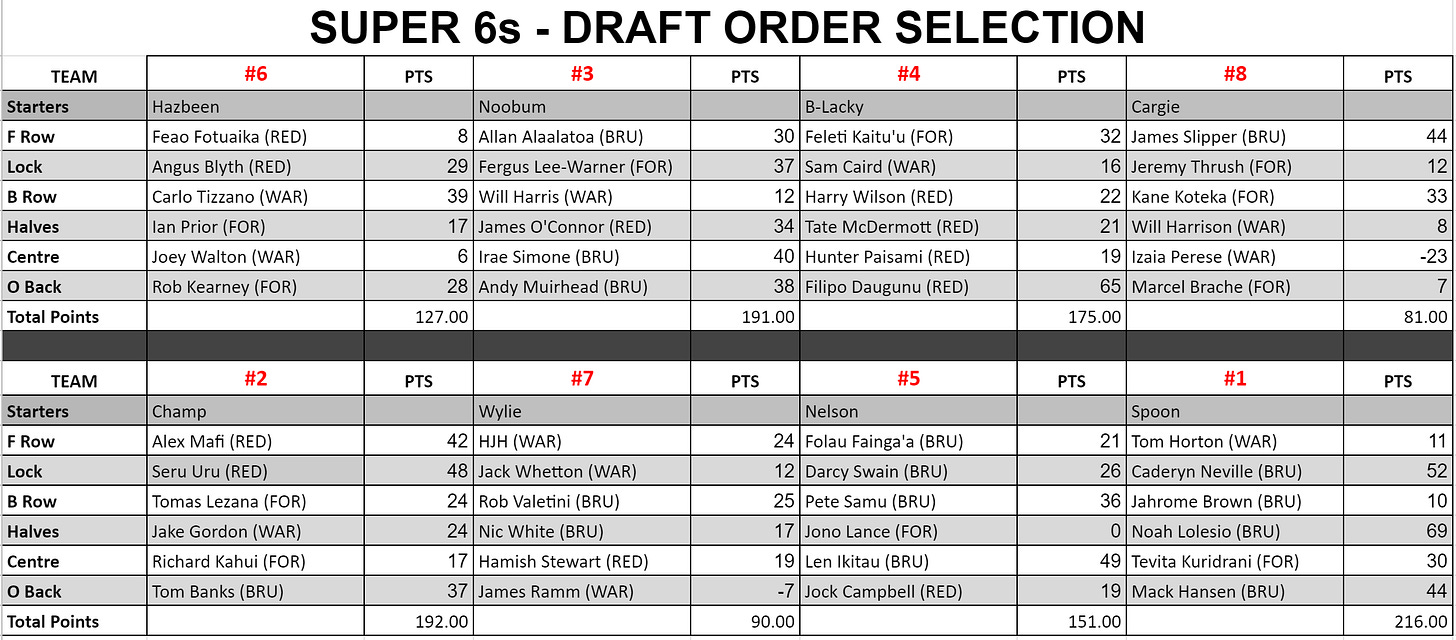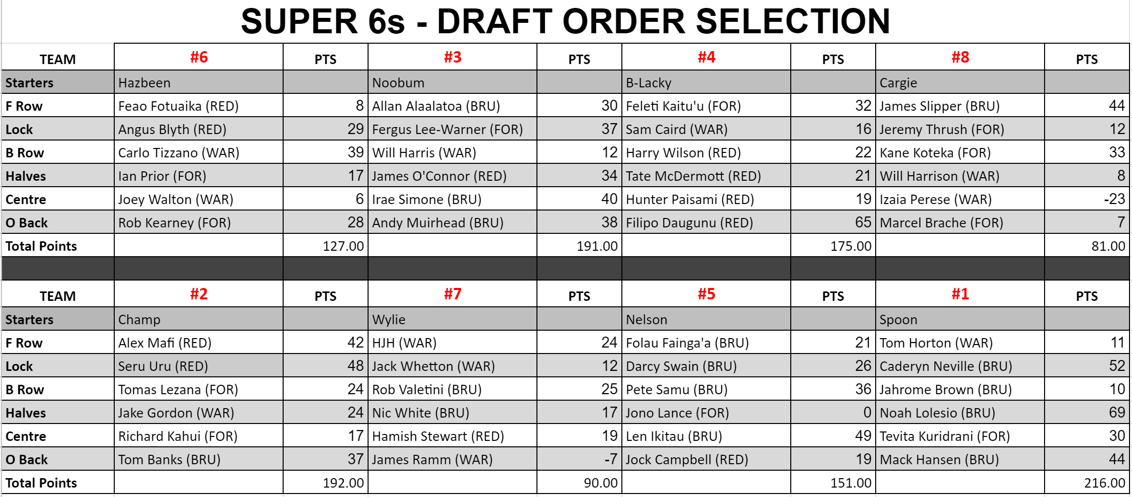 This year Super Rugby AU round 1 was staged before Draft Rugby actually started, meaning we could use it to create a randomly generated draft match-up to decide the all important draft order.