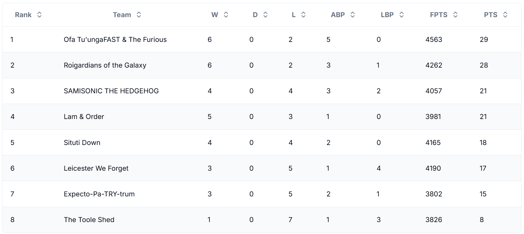The OG League Table After Round 8