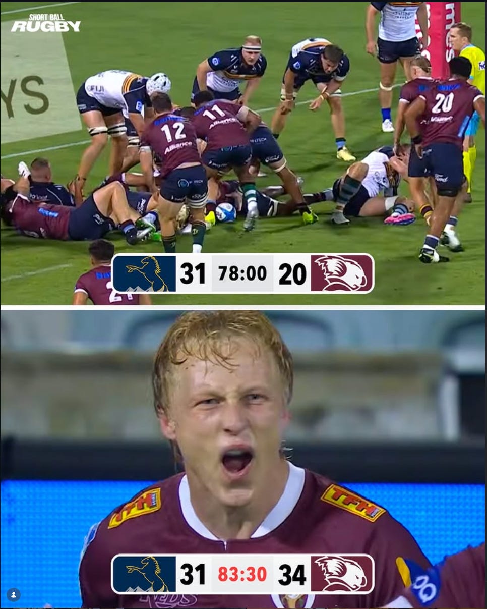 For Wylie, it was a case of “what could have been.” Despite a heroic Billy Proctor (77) performance and and the ever-reliable Jonah Lowe (65) - who funny story, we found out on the weekend Wylie actually thought was ex Chief & current Leinster/Ireland player James Lowe. Fehi Fineanganofo (47) and Simon Parker (45) had strong showins and Wylie’s depth was tested early when Stephen Perofeta and Corey Toole were late scratches. Zarn Sullivan (46) and Josh Jacomb (24) both stepped up from the bench to fill the void, but ultimately he couldn’t bridge the gap against Harry’s firing front line despite having the third highest score this week. Tough one to swallow but it was back to the “Shed” with 1 attacking bonus point, narrowly missing out on a second, losing BP.